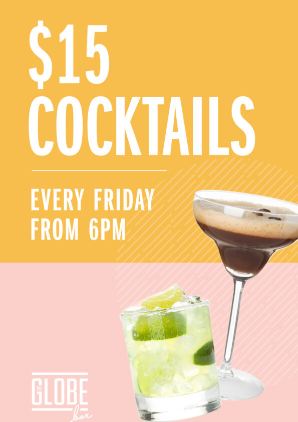 Kick off your weekend with $15 classic cocktails from 6pm every week.
